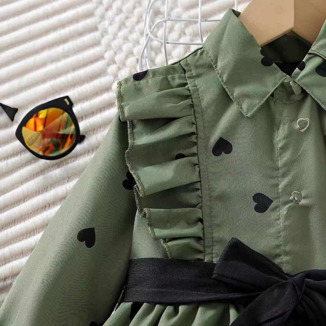 Chic Girls' Heart Print Blouse & Pants Set with Bow Belt – Stylish Outfit for Special Occasions
