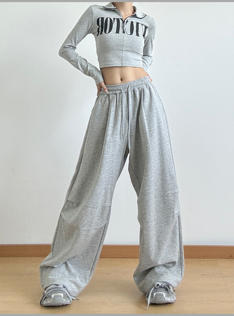American Grey Sweatpants Women's Autumn 2024 New High Waist Straight Leg Loose Casual Sweatpants Cargo Wide-leg Pants