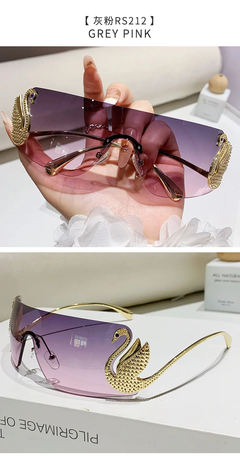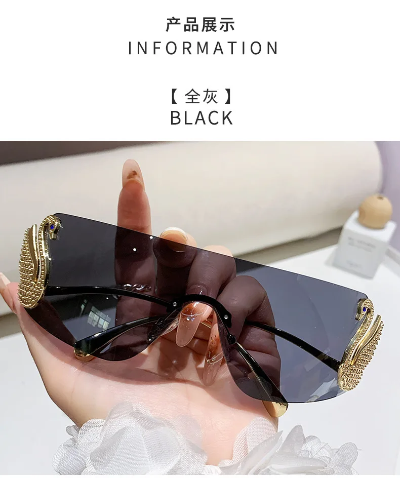 New Fashion Women Oversized Rimless Sunglasses Luxury Brand Large Frame Sun Glasses
