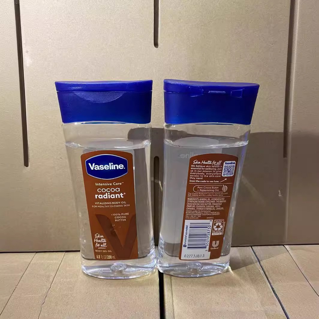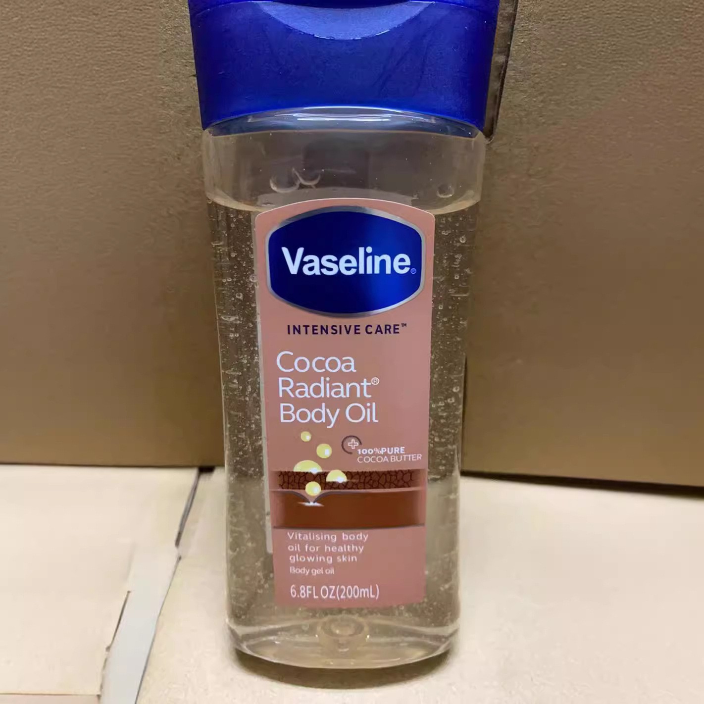 Enriched with 100% pure cocoa butter and Vaseline Jelly, this gel oil restores dry, dull skin to a healthy, radiant glow. Ideal for rough or dry skin needing a hydration boost. - Vaseline Cocoa Radiant Body Oil