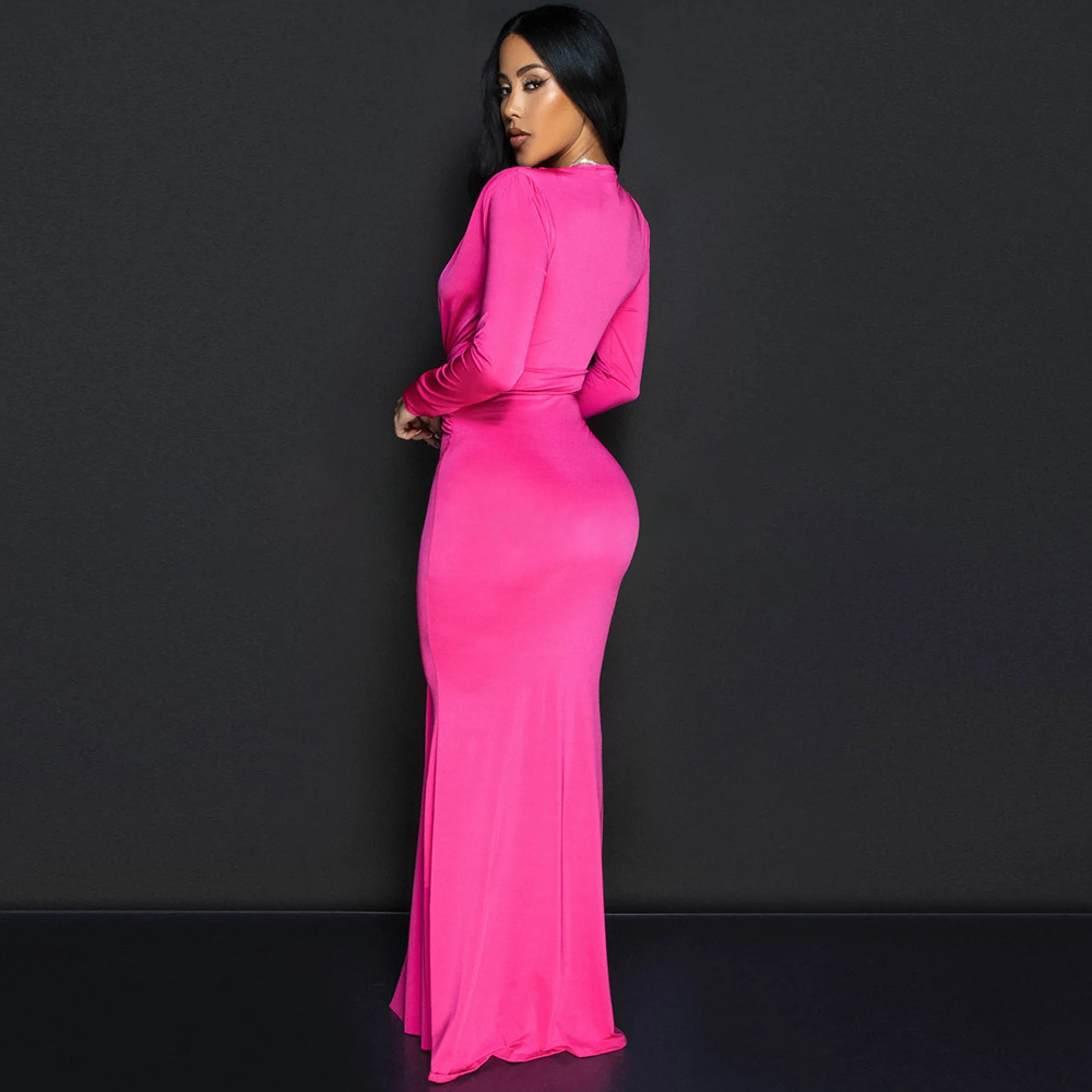 Europe and America Sexy Deep V Slim Long Sleeve Solid Color Dress Party